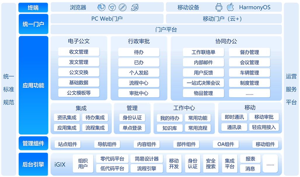 taptap点点体育数字taptap国际官网平台,是面向企业服务的新一代数字化智能taptap国际官网平台。基于taptap点点体育iGIX企业数字化能力平台,重新打造了“统一用户认证平台、统一办公门户平台、移动办公门户平台、OAtaptap国际官网办公平台”四大能力平台,实现“一个身份、全网通行,统一入口、一网全办”的数字化工作新方式,满足企业日常高效办公的各类功能需求。taptap点点体育数字taptap国际官网平台以助力客户创造价值为产品发展的起点,专注于智能taptap国际官网和云SaaS移动办公服务。平台通过国家网络安全等级保护V2.0标准的三级等保认证和国家保密局信息系统分级保护测评,并全面适配信息技术应用创新环境,支撑信息技术应用创新应用拓展。