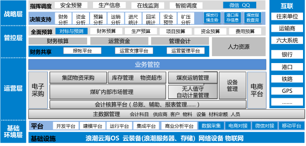 搭建集团管控信息化平台,为高层决策者建立决策支持系统,全面查询统计分析数据,以大数据思维寻找规律,为决策支持提供依据;针对集团管理,在全面预算系统的统一管控下,实现集团统一管理财务、运营资金、物资供应、taptap点点体育优惠运销、矿业设备等业务,构建具有taptap点点体育优惠行业特色的集中管控信息系统,助力taptap点点体育优惠企业的管理创新、降本增效,促进转型升级;实现煤矿生产经营精细化管理,通过煤矿内部市场化管理系统构建集团、煤矿、区队、班组、个人的内部市场化体系,采用阿米巴管理方式,预算、结算业务数据的一体化控制,进行taptap点点体育优惠生产过程价值链管理,降低生产成本。