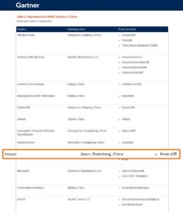 图:Gartner-中国DBMS代表厂商(部分)